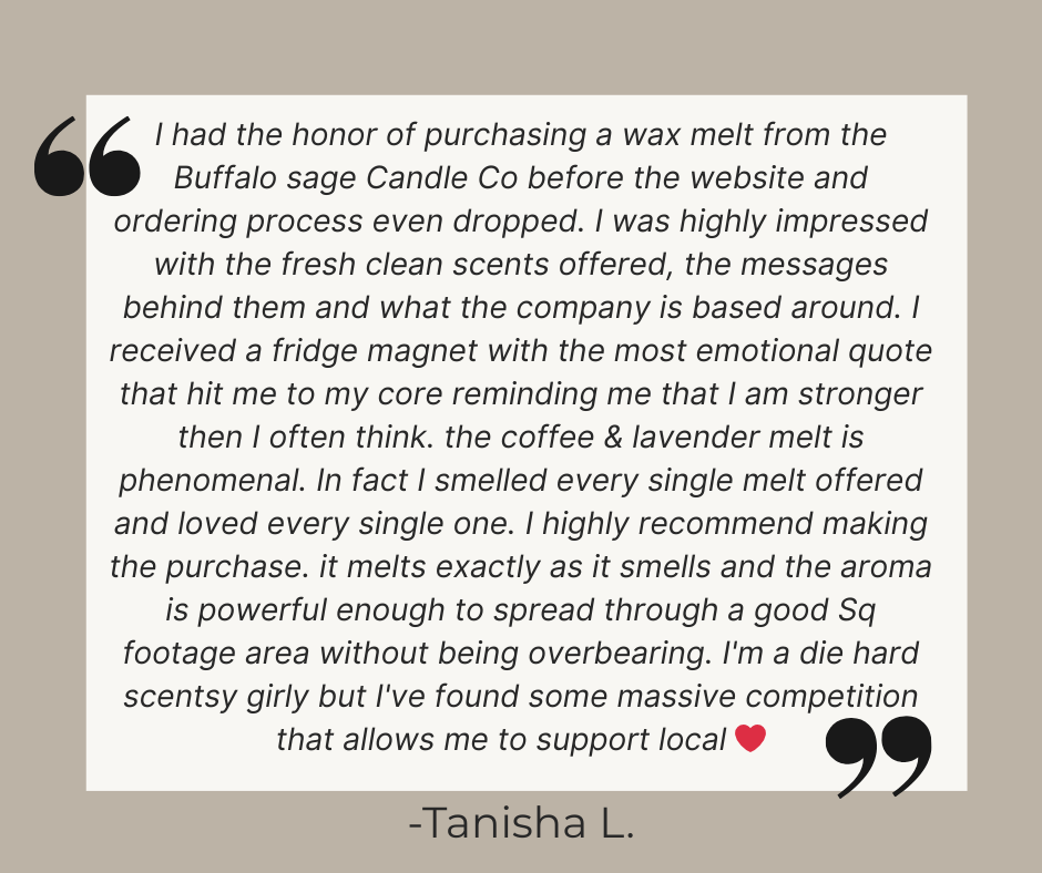 We love partnering with like-minded shops and businesses that share our passion for creating warm, inspiring spaces. If you’re interested in carrying Buffalo Sage Candle Co. products in your boutique, salon, or gift shop, we’d love to connect!